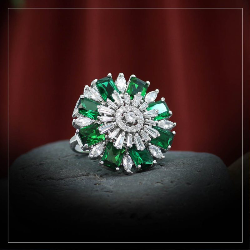 Silver Emerald Green Ad RingAvailability: In Stock