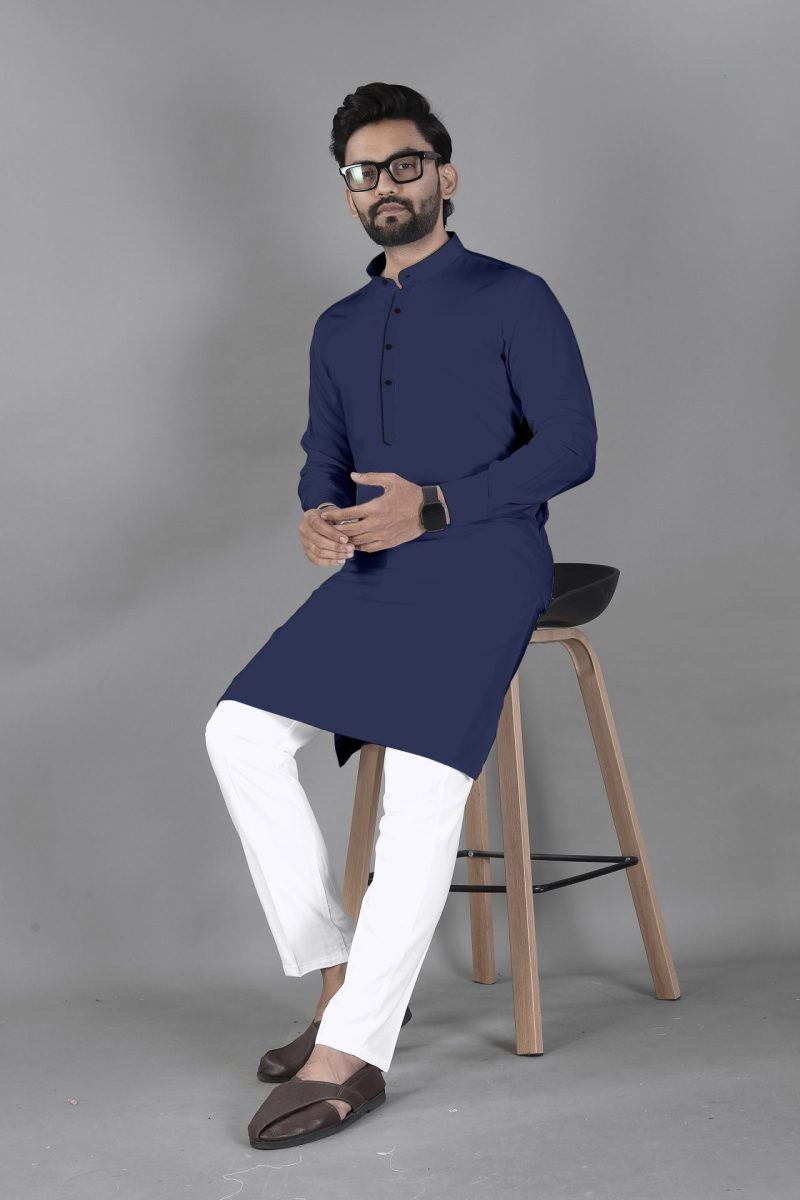 The ban collar holds a strong place in traditional menswear. It represents discipline, grace, and understated royalty. Meanwhile, blue symbolizes trust, harmony, and inner strength. Together, they create a look that feels culturally grounded and emotionally soothing. As a result, this outfit feels meaningful and timeless.
