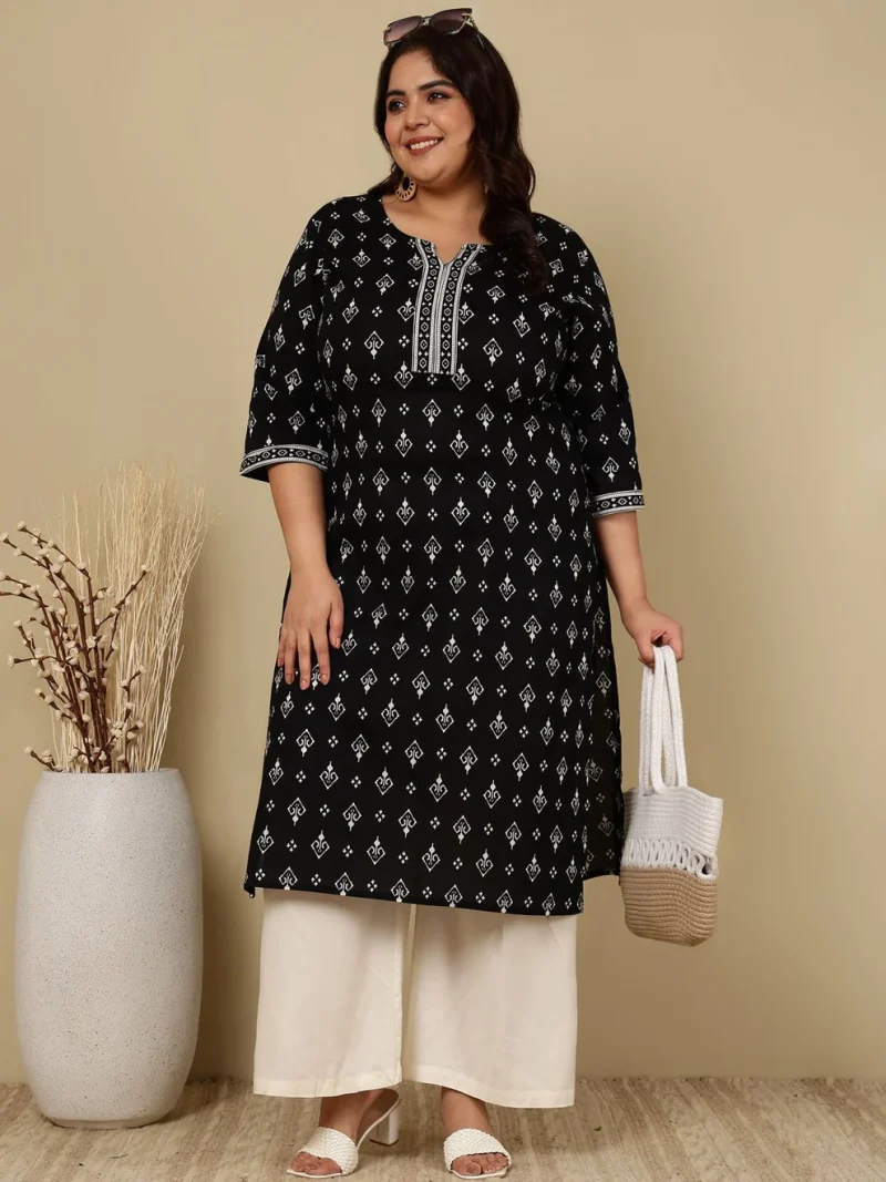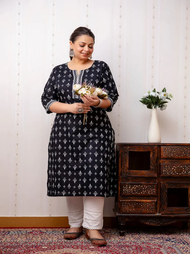 Black Printed Straight Kurta – A Classic Blend of Comfort and Style