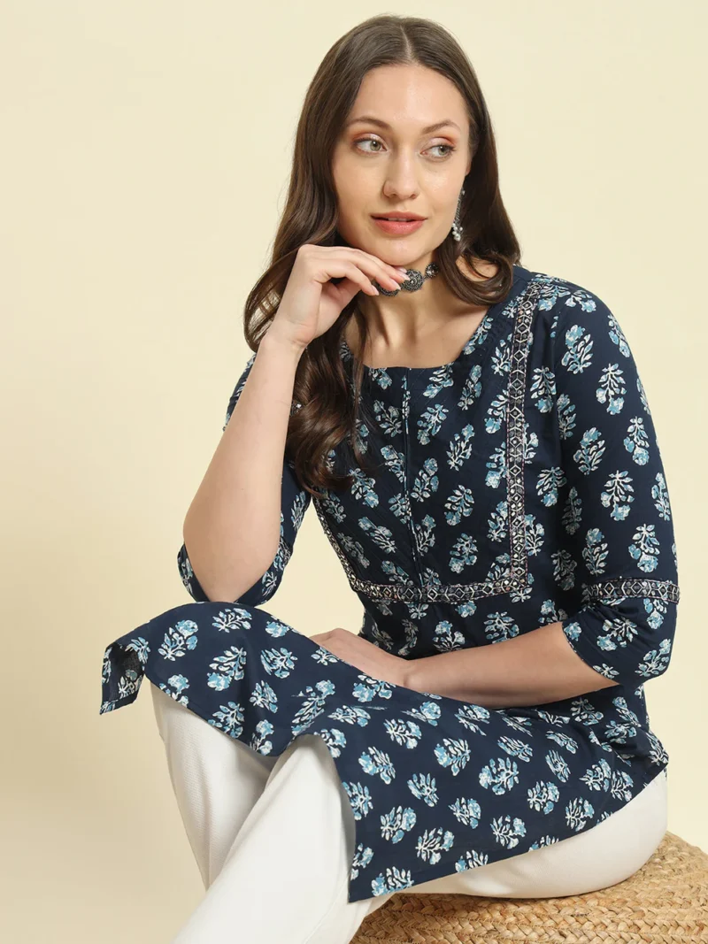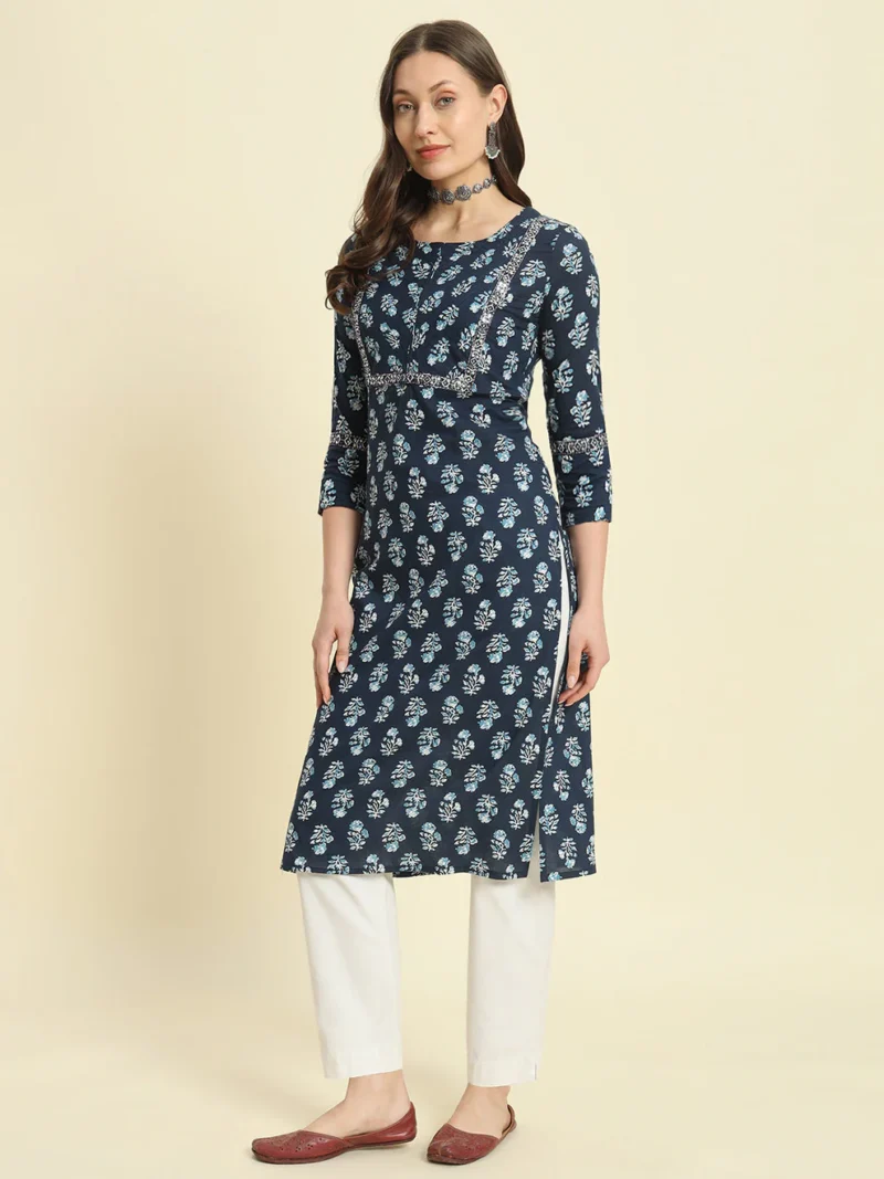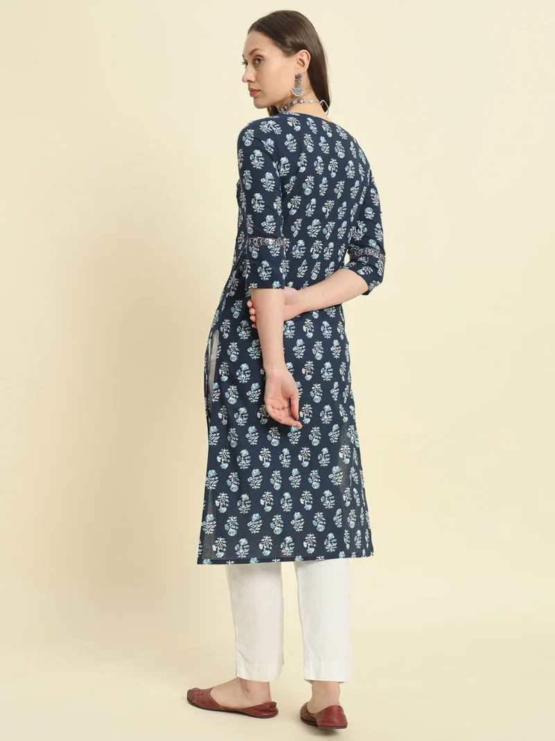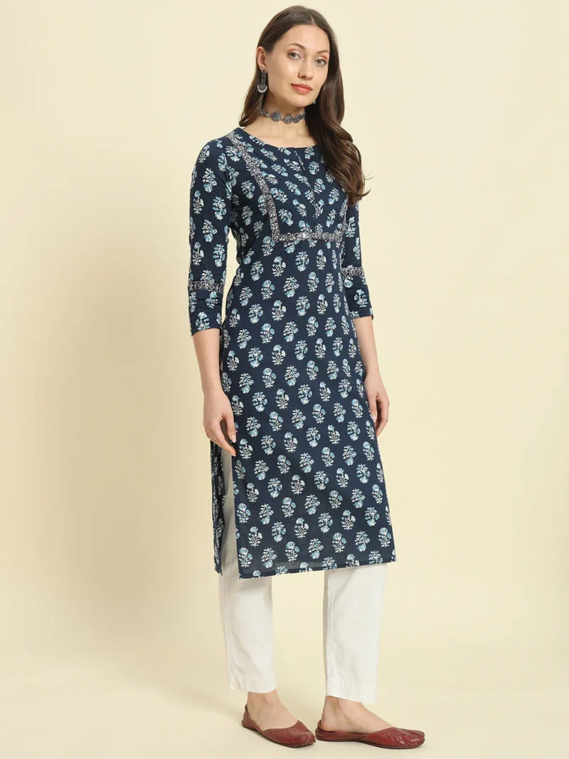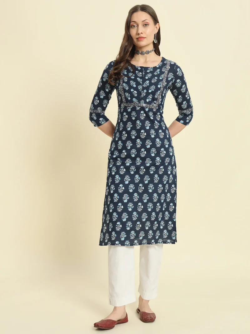 The Blue Cotton Printed Kurta is a versatile and stylish choice for women who value comfort and elegance. Its thoughtful design and breathable fabric make it ideal for various occasions, from work to weekend outings. Elevate your summer wardrobe with this must-have piece and enjoy a perfect blend of tradition and modernity.