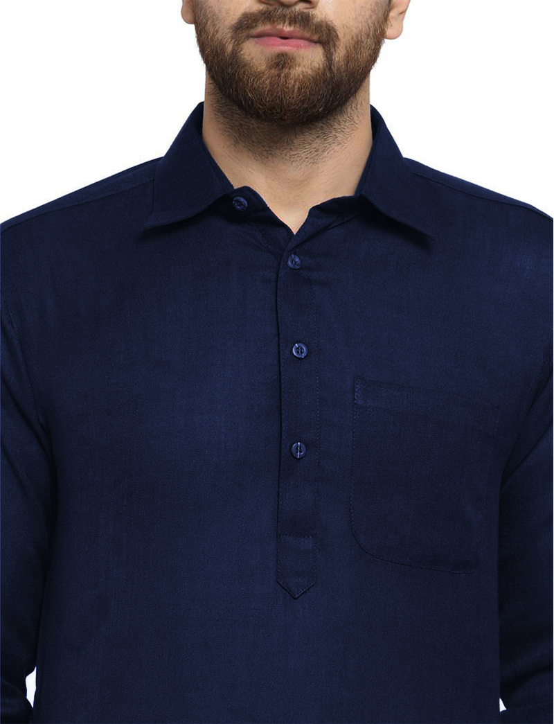 Blue, a color that symbolizes calmness and depth, adds a unique charm to the Punjabi kurta pajama. This hue complements all skin tones and effortlessly balances traditional and modern aesthetics, making it a versatile choice for any occasion.Breezy Cotton Fabric for Ultimate Comfort