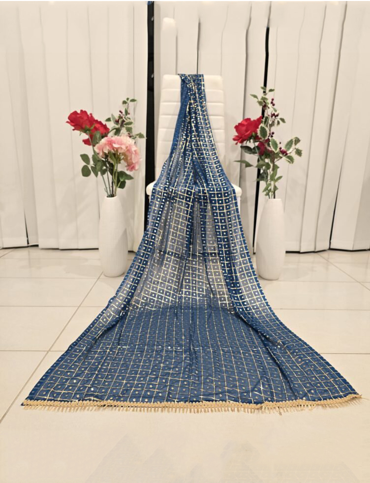 Blue With Golden Embroidery Dupatta