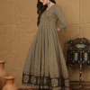 Brown Cotton Anarkali Kurti Set