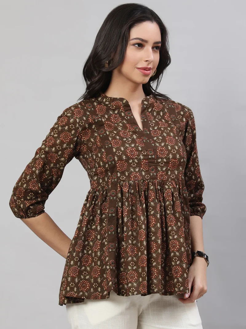 The Brown Short Cotton Top reflects the charm of practical Indian dressing. Earthy brown tones connect with nature and tradition. Moreover, cotton clothing has always represented comfort and modest living. This top therefore blends cultural values with modern needs for easy fashion.