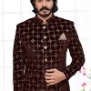 Brown Mirror Work Velvet Jodhpuri (Only Jacket)