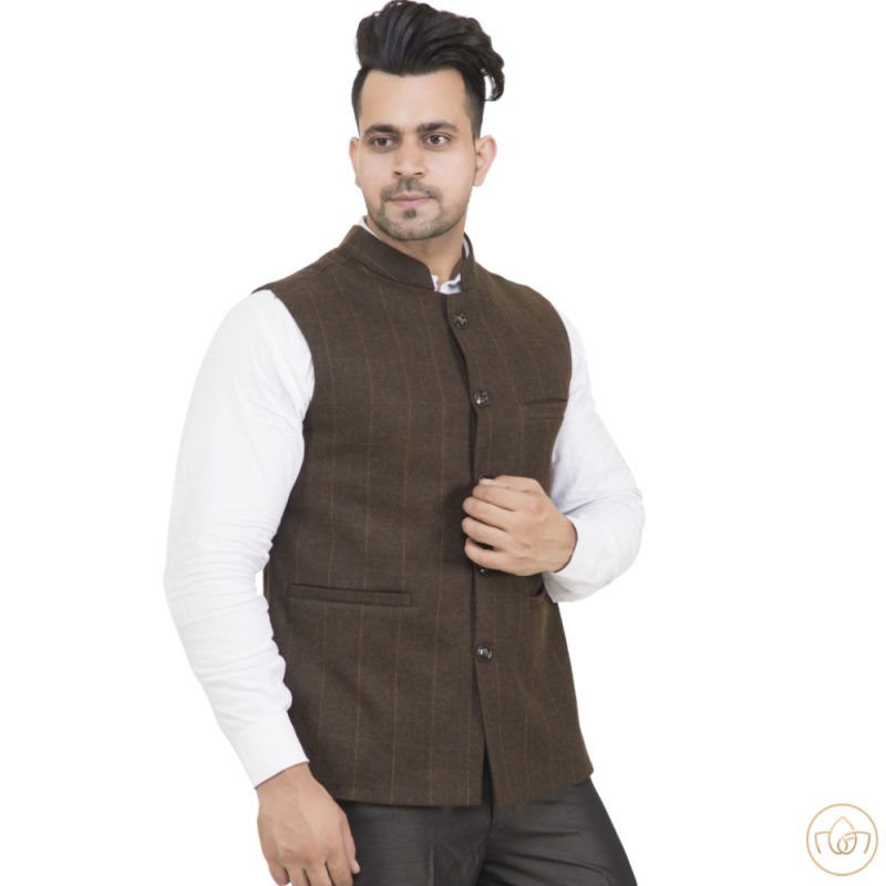 Check Nehru Jacket – Brown – Semi WoolenAvailability: 0 In Stock