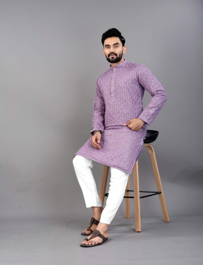 Chikankari Lavender Kurta Pajama: Elegance in Tradition