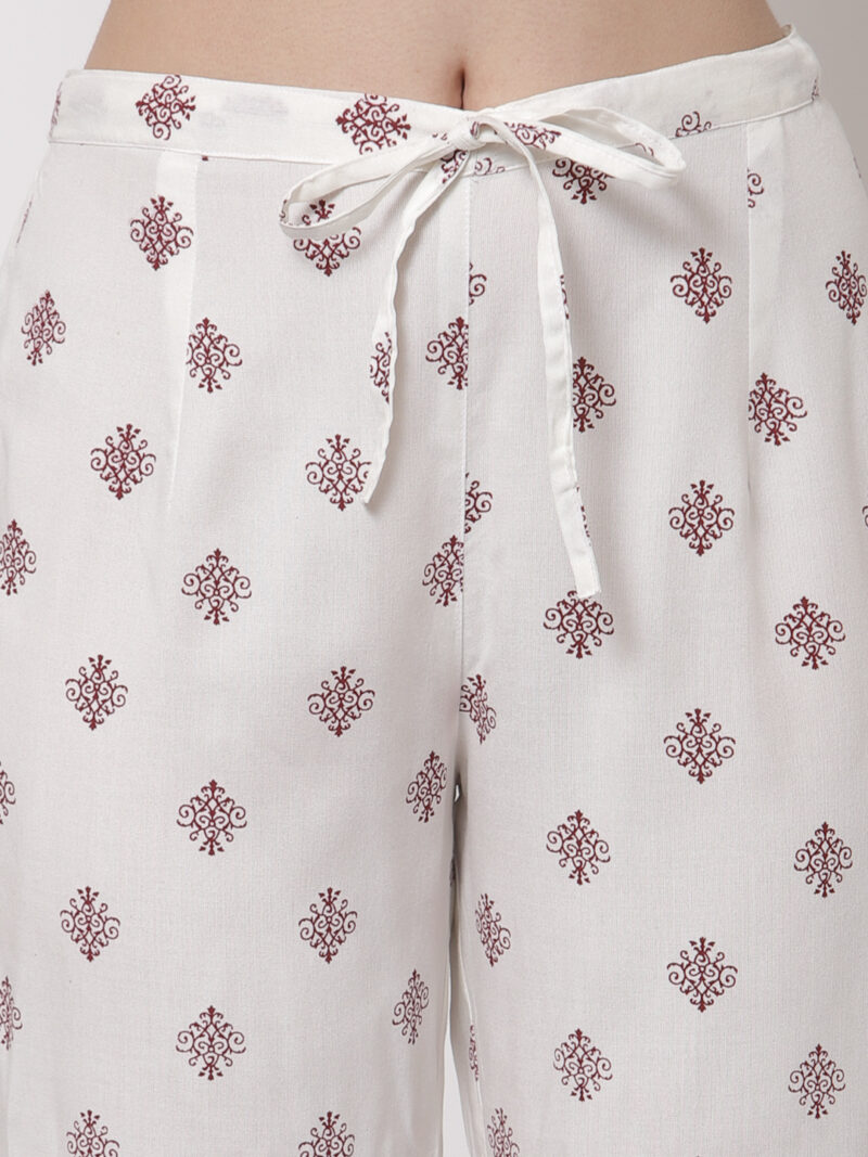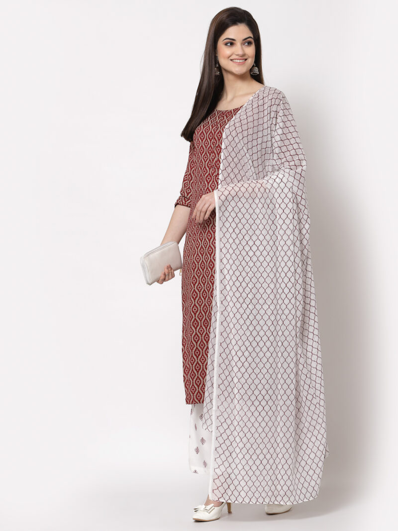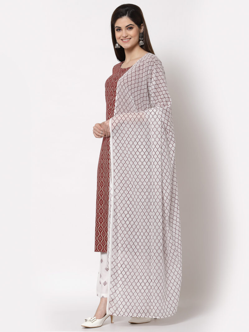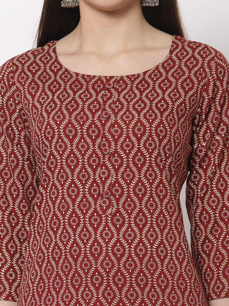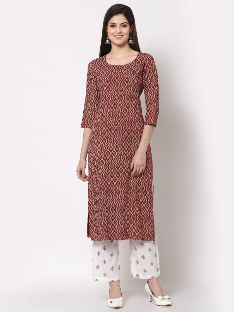 Enhance your fashion creativity with the endless pairing possibilities offered by the cotton printed kurti set. From statement