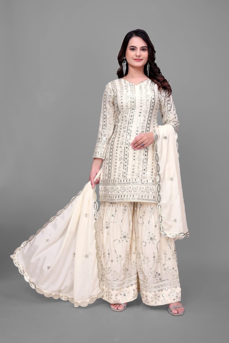 Palazzo Fabric: Heavy faux georgette with coordinated embroidery sequence work