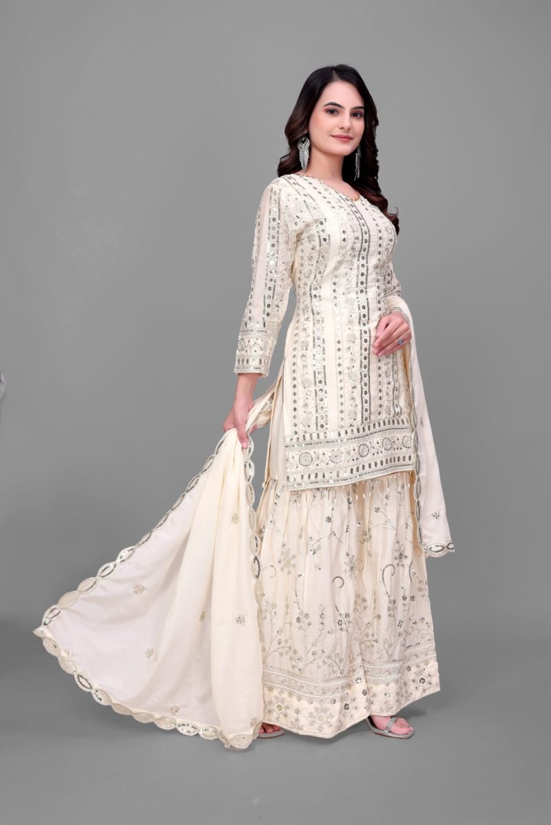 The Embroidery Sequence Work Sharara Set blends heritage charm with contemporary sophistication. It offers effortless elegance while ensuring comfort for modern lifestyles. Moreover, it reflects refined craftsmanship designed for women who value detail and quality.
