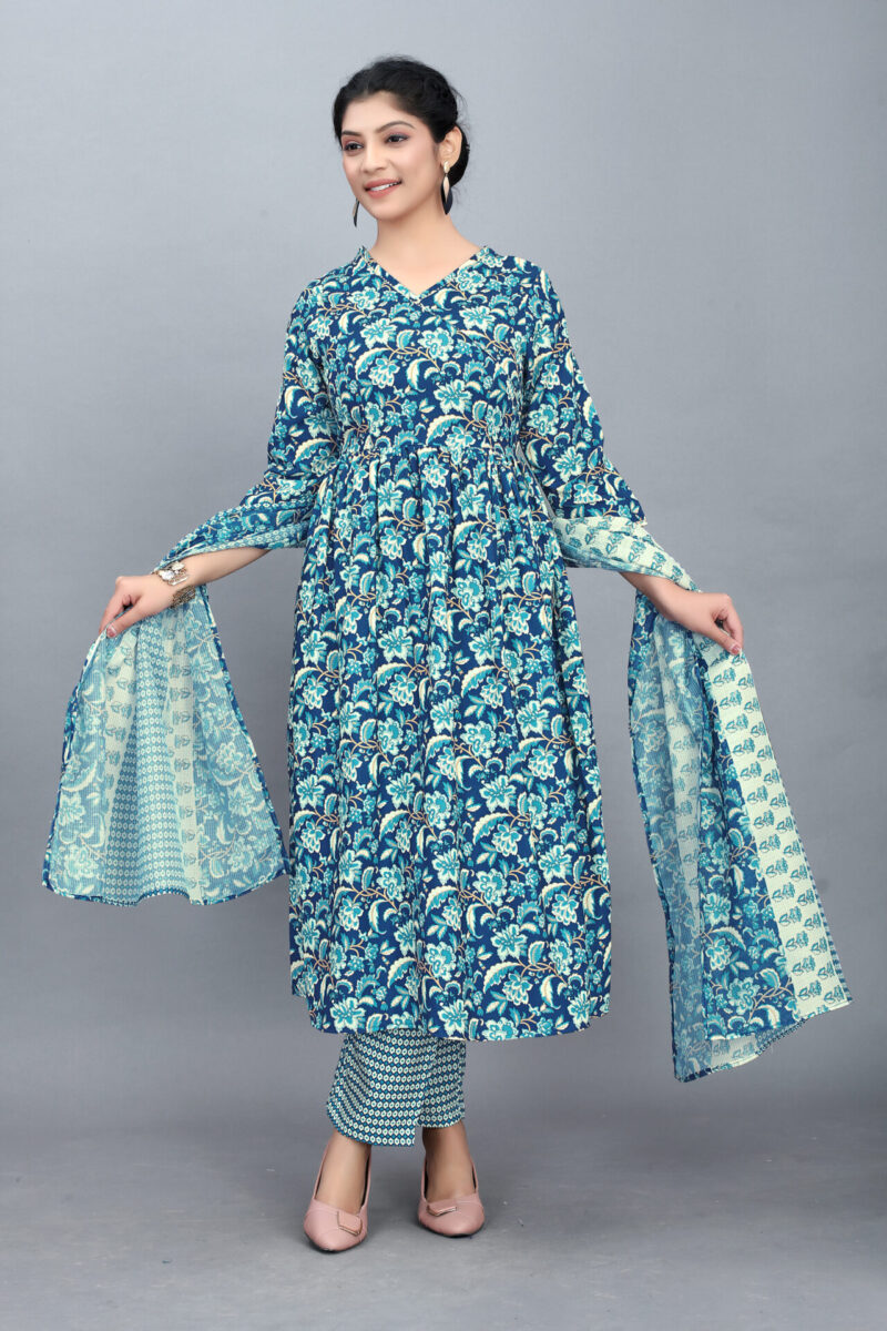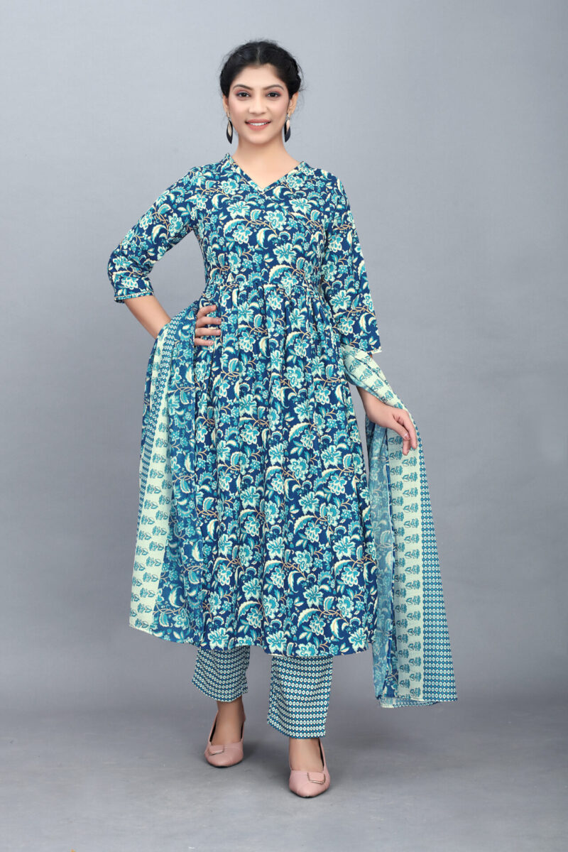 Floral Anarkali Kurta Set Women hold a cherished place in Indian culture. With roots tracing back to Mughal traditions, these garments symbolize grace and elegance. They embody a blend of historical significance and modern charm, making them a staple in ethnic wardrobes.Occasions to Wear a Floral Anarkali Kurta Set