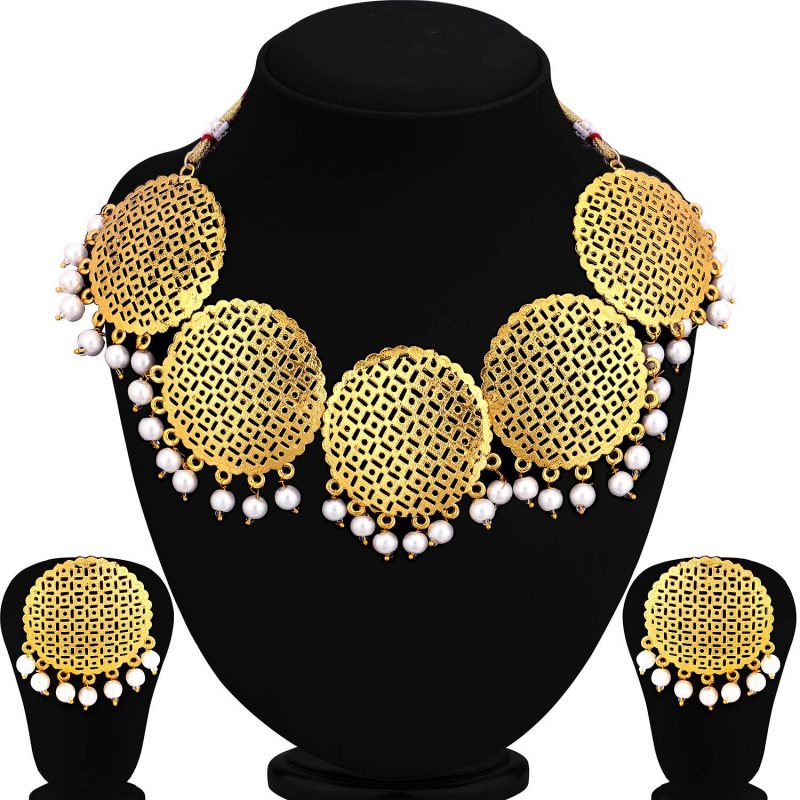 Gold Plated Necklace Set With Earrings and Tika