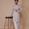 - Elevates the traditional attire with a contemporary twist, showcasing sartorial elegance.