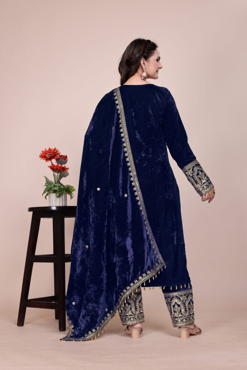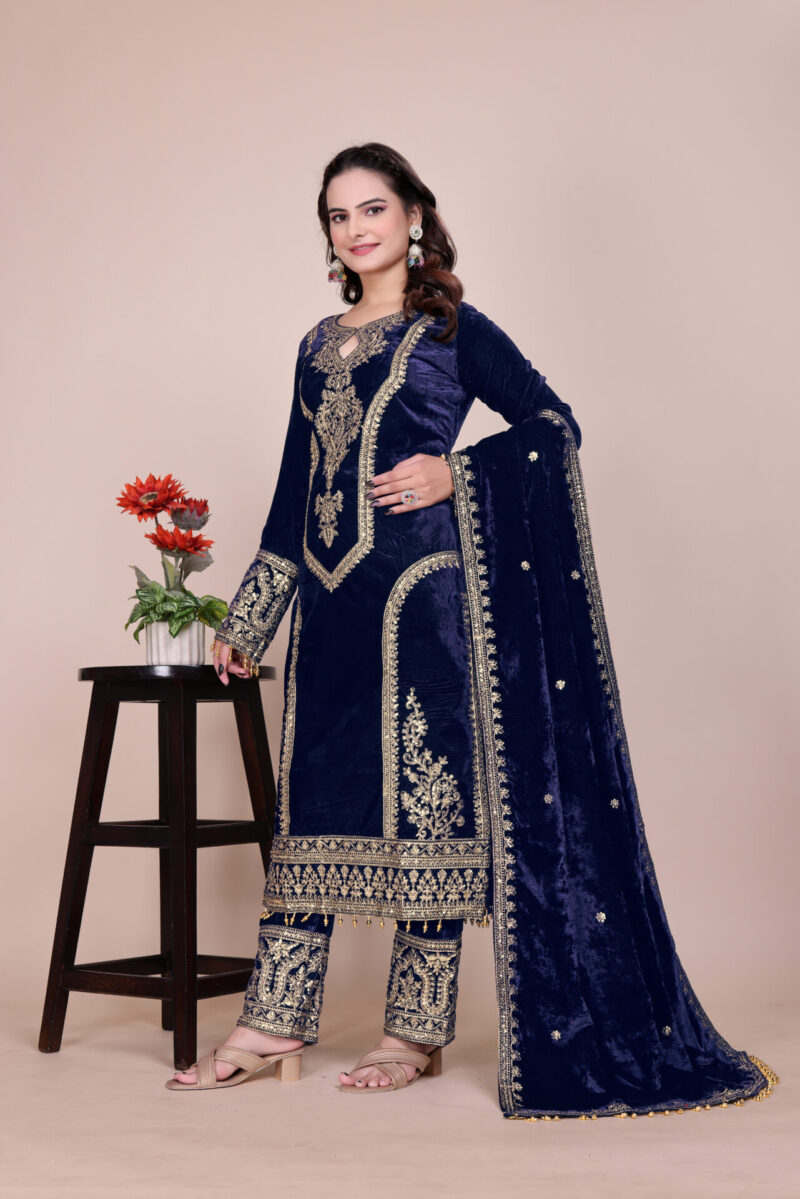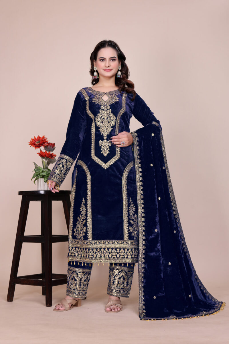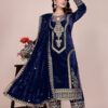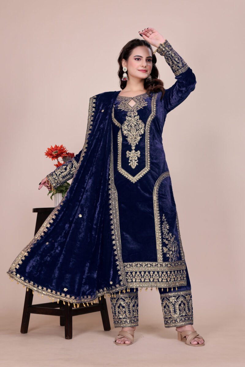- Top Fabric: Heavy Pure Viscose Velvet With Embroidery Sequence & Coding Dori Work With Fancy Moti Latkan With Sleeve