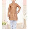 The Golden Printed Kurta Pajama has always been a symbol of grandeur and festivity. Gold reflects prosperity, warmth, and celebration in Indian culture. Crafted in cotton with printed embroidery design, it blends comfort with elegance. Wearing this attire expresses pride in tradition while exuding a royal charm.