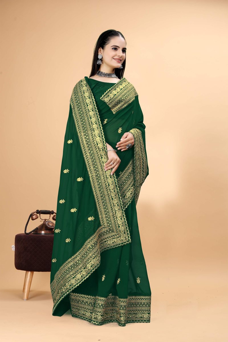 The Enchanting Green Embroidered Georgette Saree: A Timeless Fashion Statement