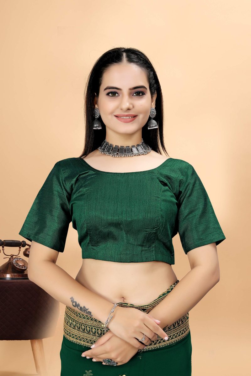 The beauty of the green georgette saree is further enhanced by the intricate embroidery that adorns it. Each stitch and pattern is a testament to the skilled craftsmanship involved in its creation. The embroidery adds depth and texture, transforming a simple saree into a piece of art that exudes grace and allure.