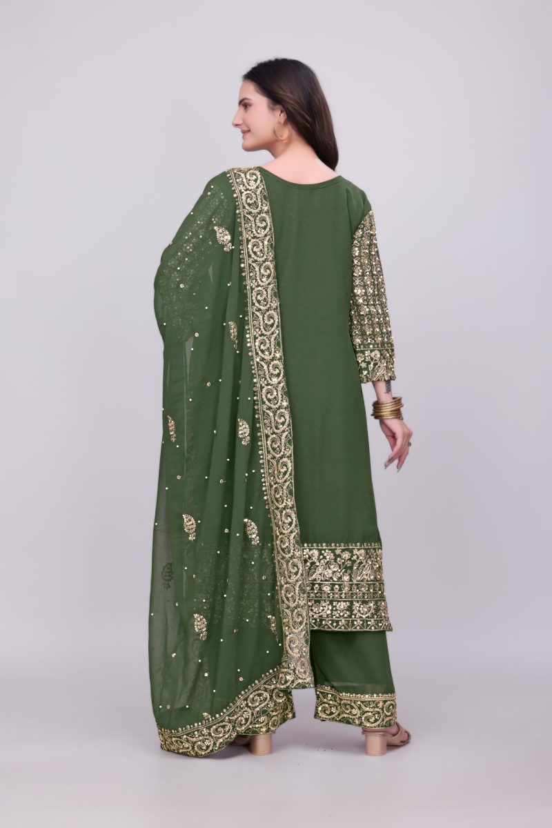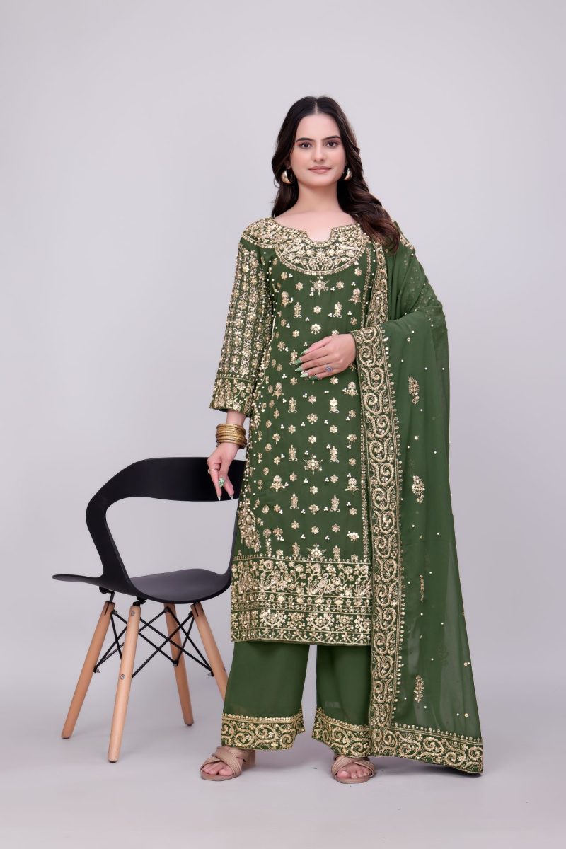 Green Heavy Embroidered Palazo Suit has always symbolized growth, harmony, and prosperity in Indian culture. Traditionally associated with festivals, weddings, and auspicious beginnings, a green ensemble reflects balance and freshness. This heavy embroidered palazzo suit beautifully carries forward that heritage while adapting it for the modern woman who values elegance with ease.