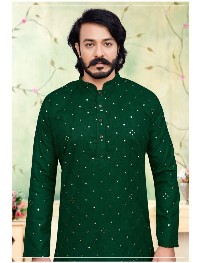 Embrace timeless elegance with our Green Mirror Men's Kurta. Whether it's garba, Diwali, Karwa Chauth, Vijay Dashmi, a pooja, party, wedding, or any other ethnic function, this attire is sure to make a lasting impression.