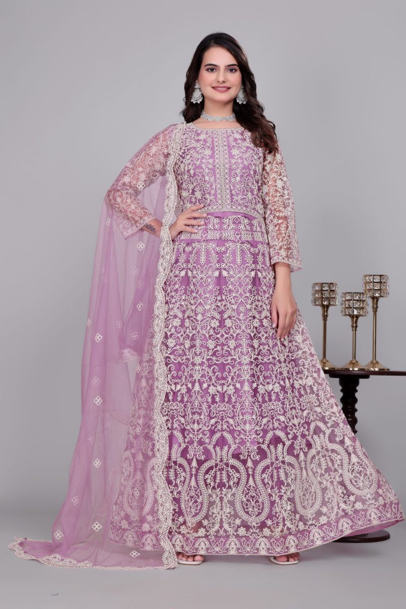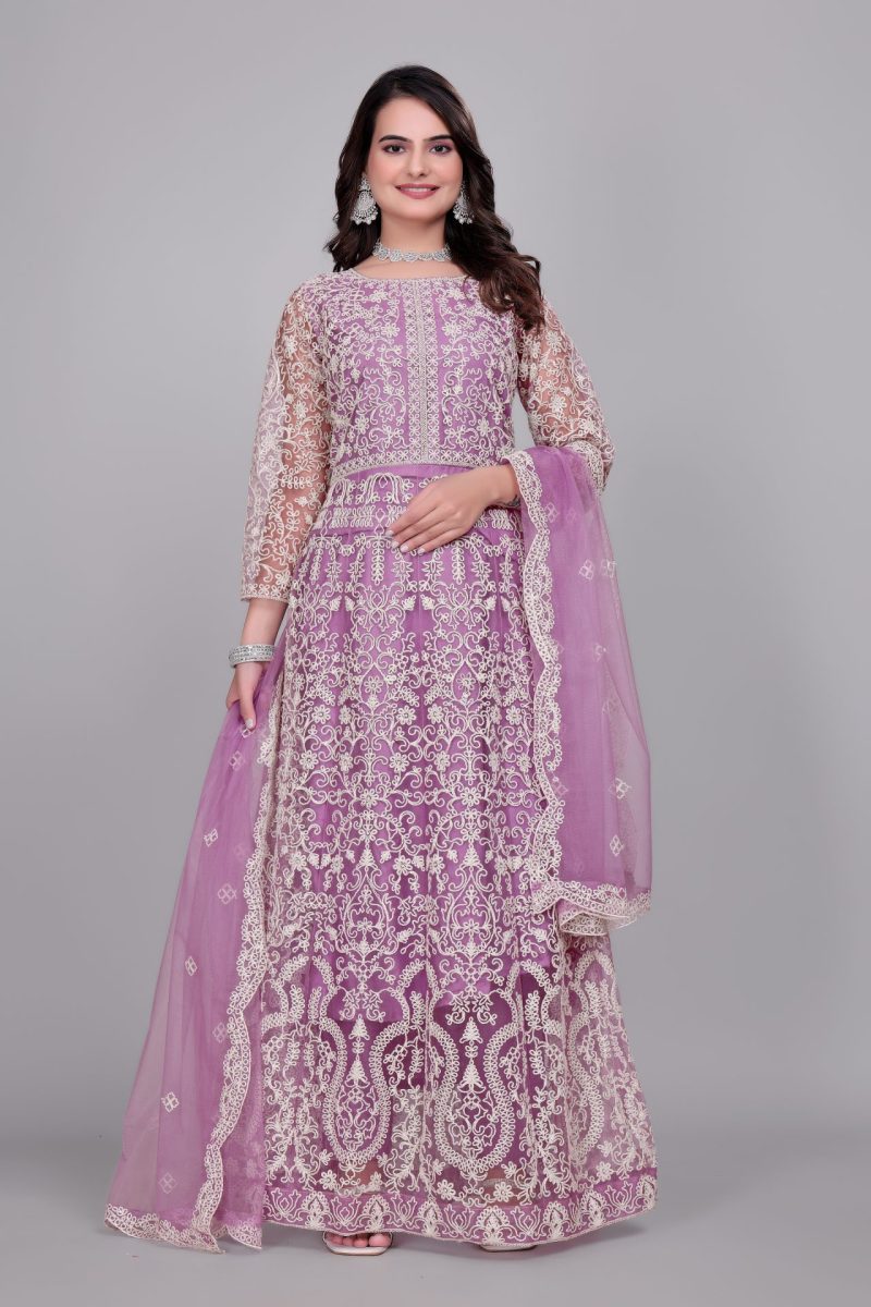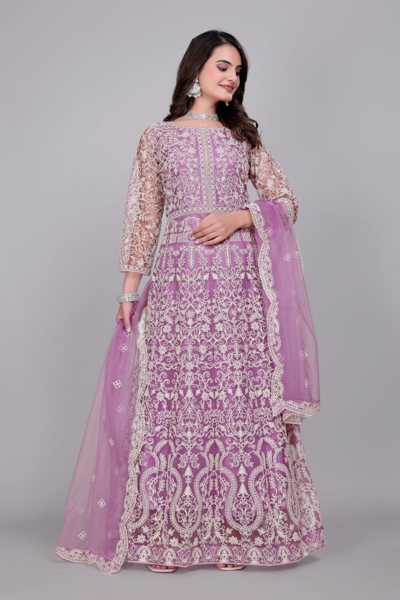 Heavy Floral Embroidery Net Anarkali Gown With Matching Dupatta