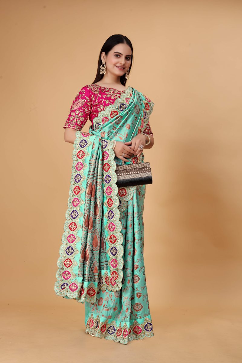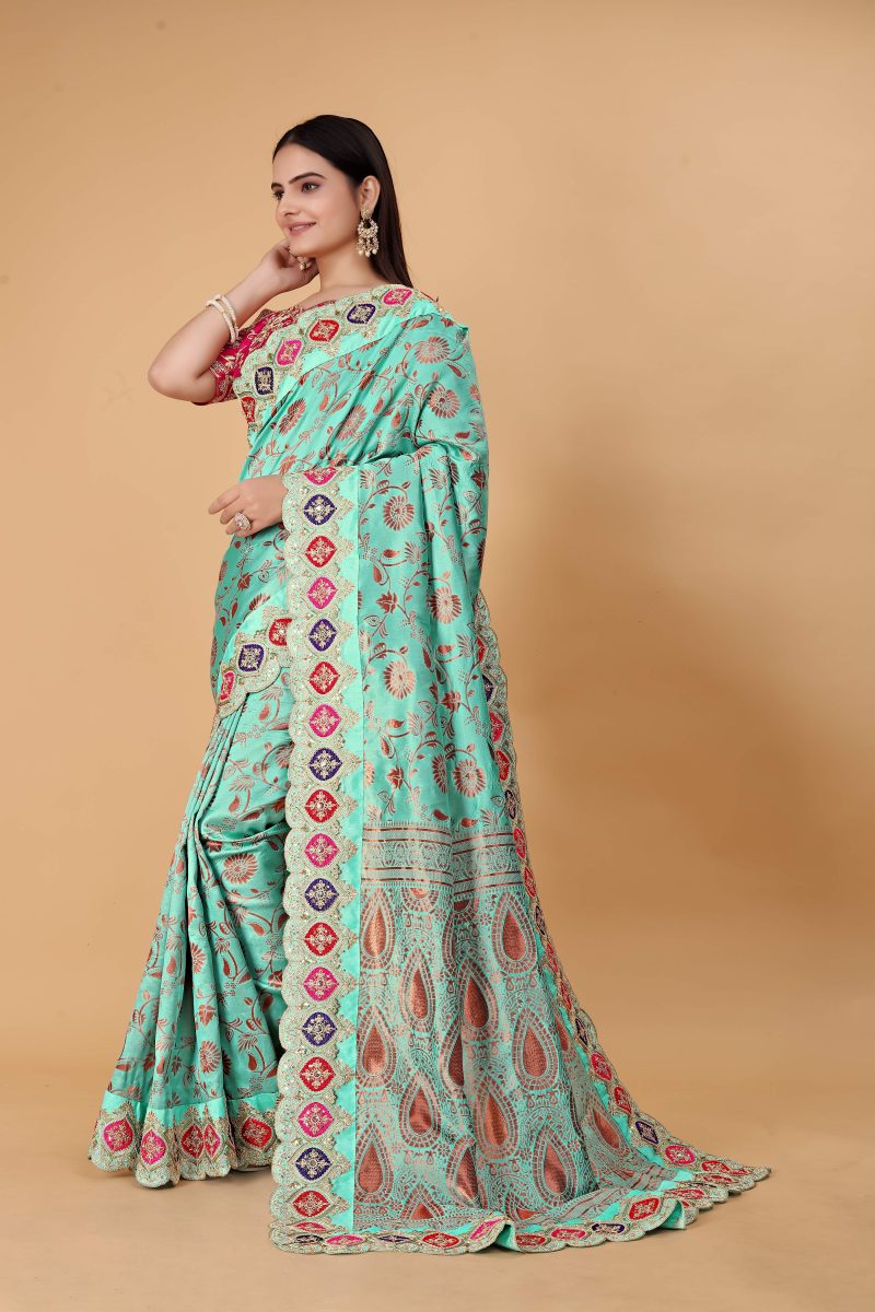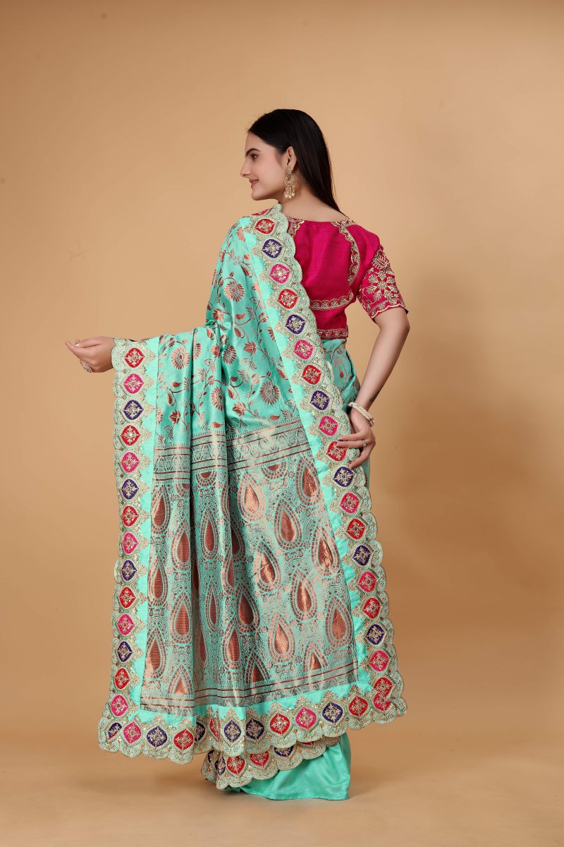 - WORK : Golden zari Jacqard Sequin Embroidery work