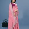 Keywords: Comfortable saree, impeccable craftsmanship, lightweight fabric, breathable attire, elegant draping, Indian wedding essentials, saree shop near me, saree shop Sydney, pink saree, bridal saree, Pure Chinnon Crepe saree, silver embroidery, stone work saree, fully stitched blouse.