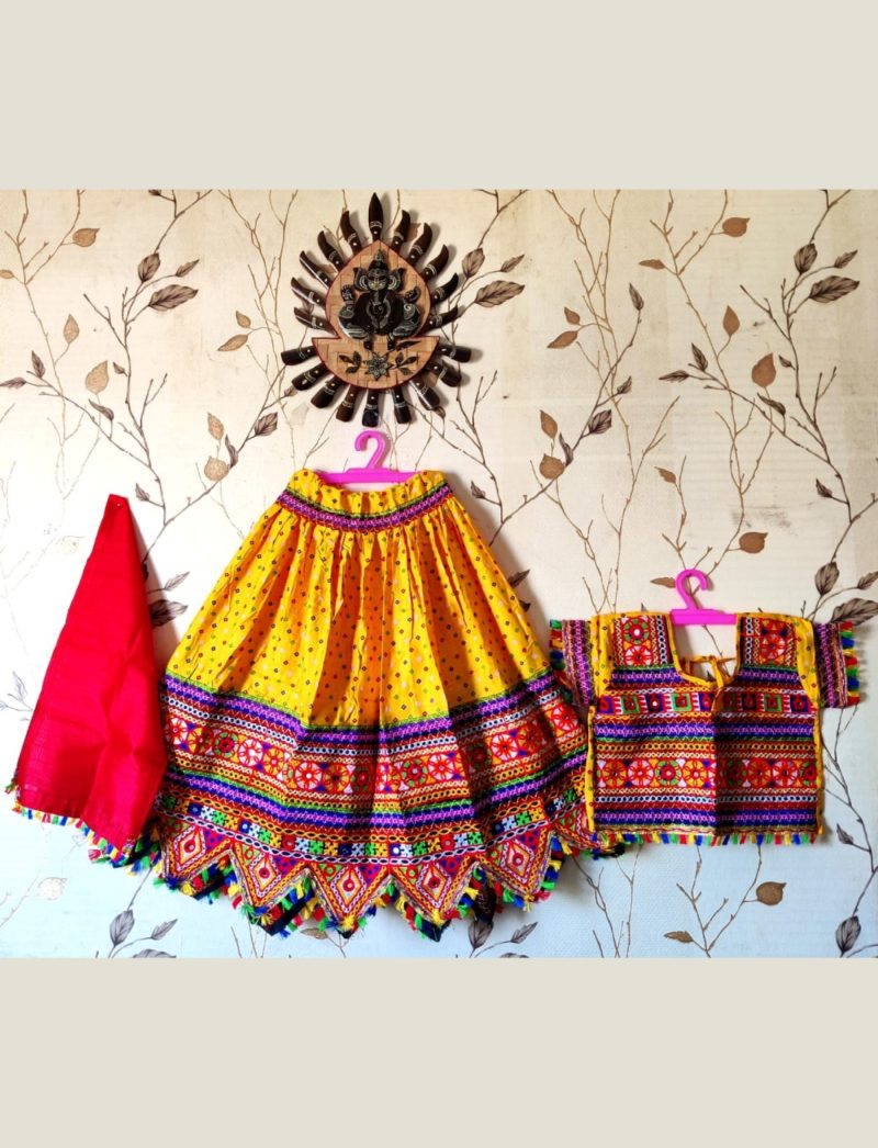 Type -Yellow Chania Choli With Yellow Lehenga & Red Dupatta