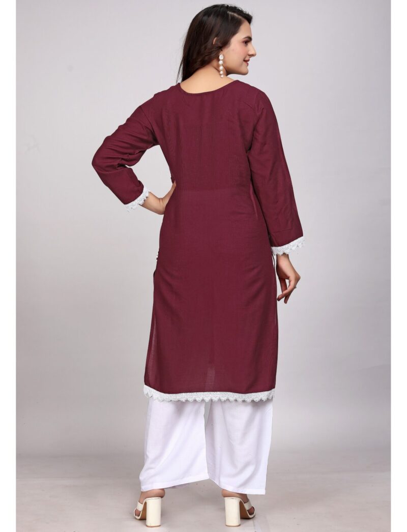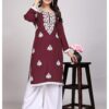 The Lucknowi Maroon Rayon Kurti Set is more than just an outfit; it's a celebration of tradition, craftsmanship, and style. Embrace this stunning attire and make a statement at your next occasion.