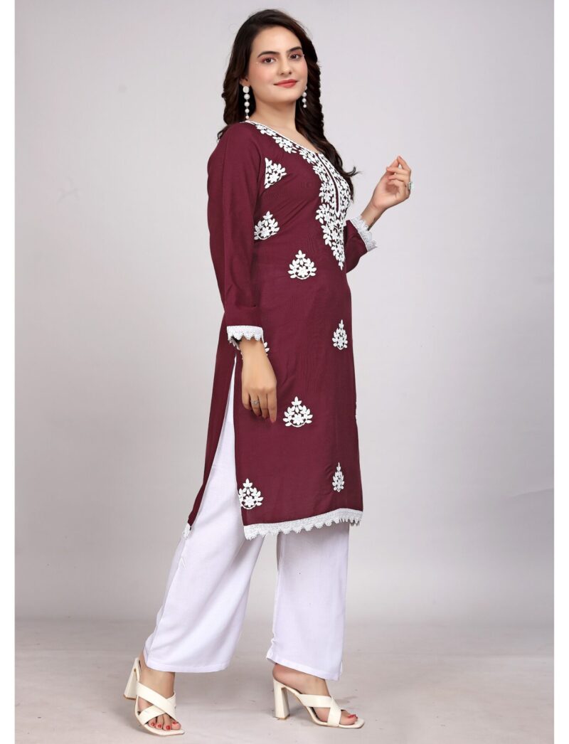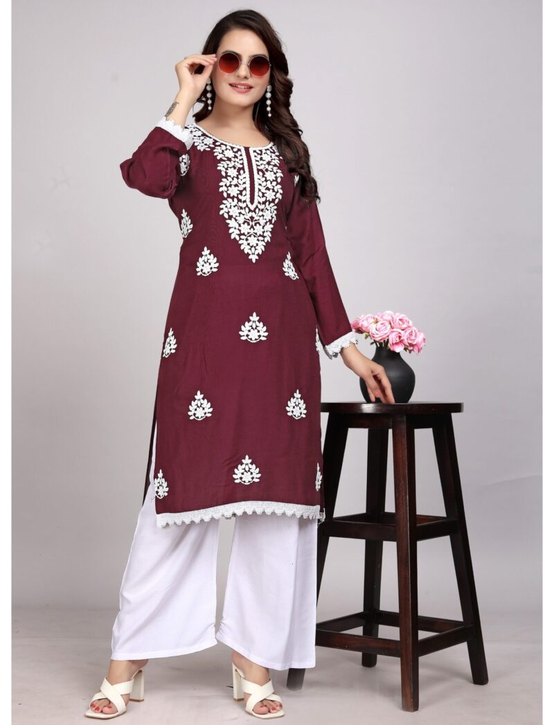 Lucknowi Maroon Rayon Kurti Set: A Blend of Tradition and Elegance