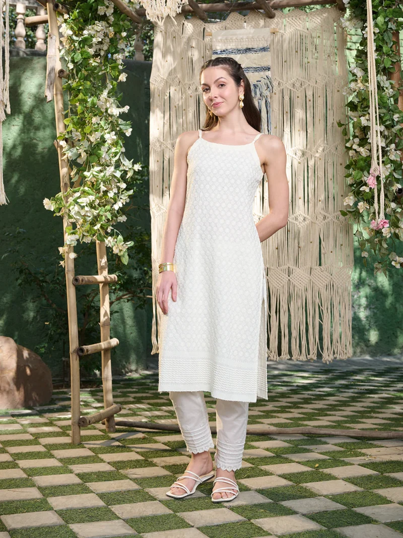 The sleeveless design allows air to flow with ease. Viscose rayon feels light even during long hours outside. As a result, this kurta suits beachside lunches and city strolls. The knee length also keeps the look relaxed and practical.