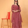 Maroon Anarkali Floral Printed Suit with Dupatta is the go-to choice for fashion enthusiasts seeking a blend of tradition and contemporary appeal. Its soft floral printed georgette fabric exudes sophistication, making it ideal for a myriad of occasions.