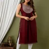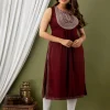 Maroon Embroidered Straight Kurti – A Perfect Blend of Tradition and Modern Grace