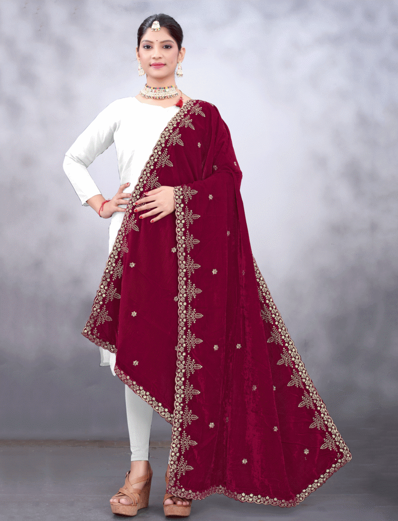 Maroon Embroidered Velvet Stole for Women: A Statement of Grace