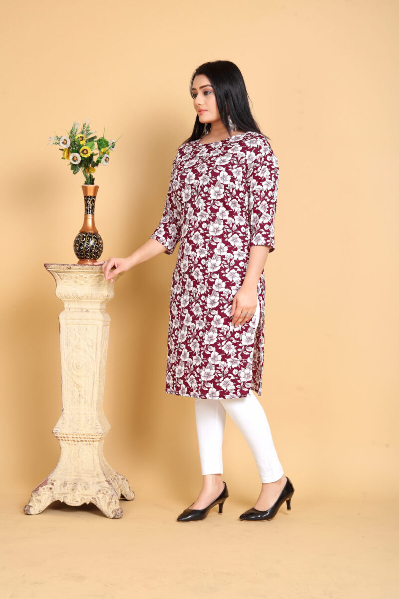 Maroon Floral Printed Kurti: Timeless Sophistication for Every Day