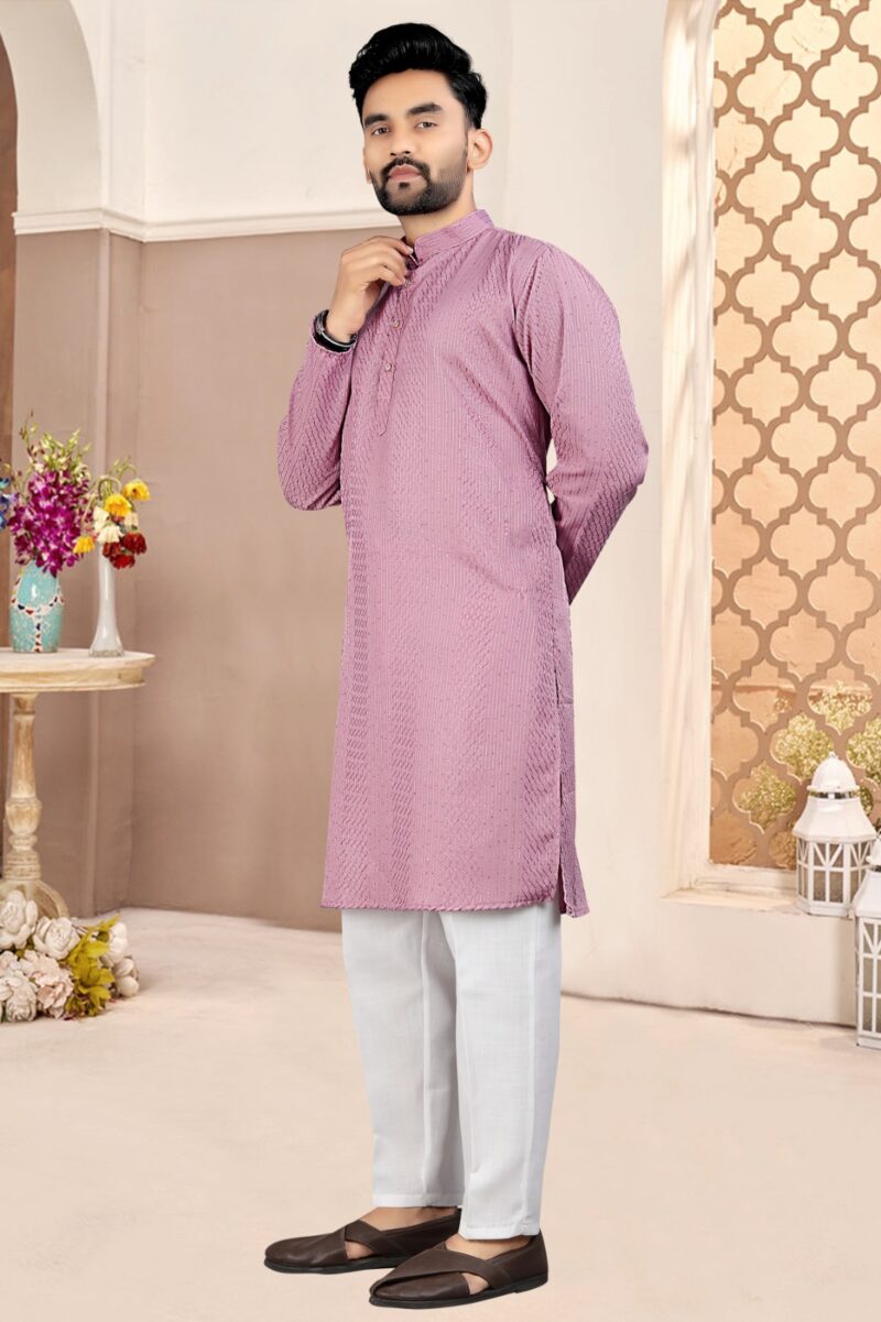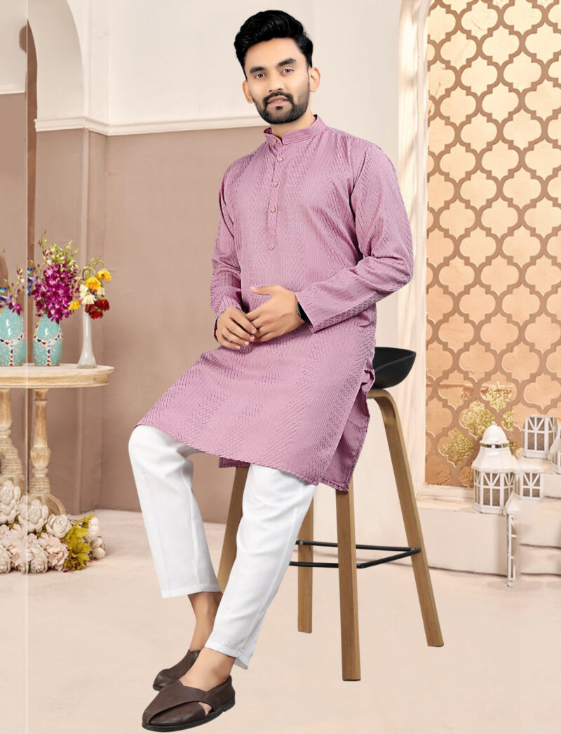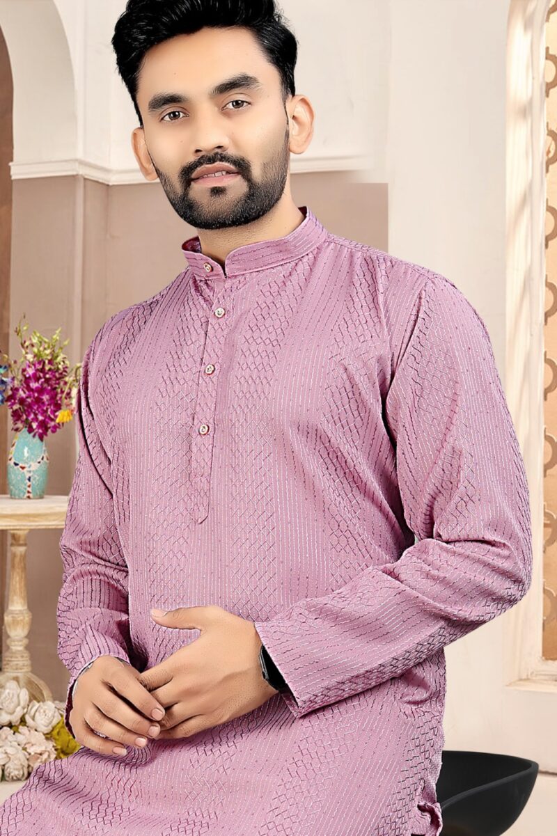 Traditional Indian Wear Long Kurta made from Cotton With Crosschat Sequence Work