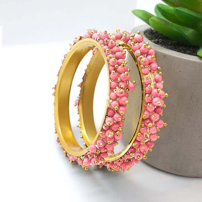 Pink Metal Pearl Gold-plated Bangle Set (Pack of 2)