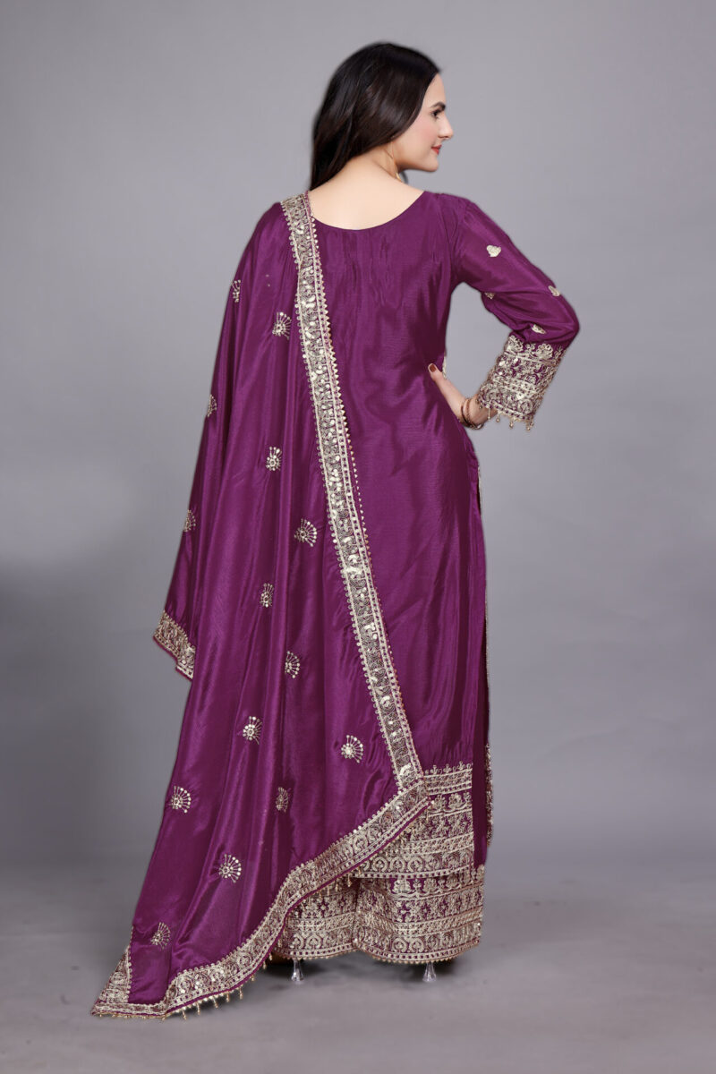 - Plazzo Fabric: Pure Chinnon Silk with heavy embroidery, coding dori-sequence work, and elastic waist for a perfect fit.
