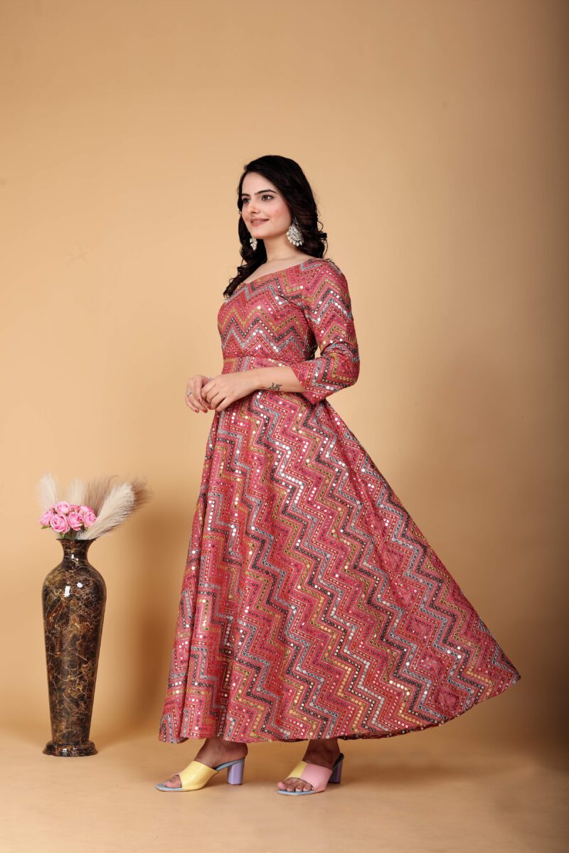 Women's Pink Embroidered Anarkali Gown: Perfect Ethnic Wear for Festive Seasons