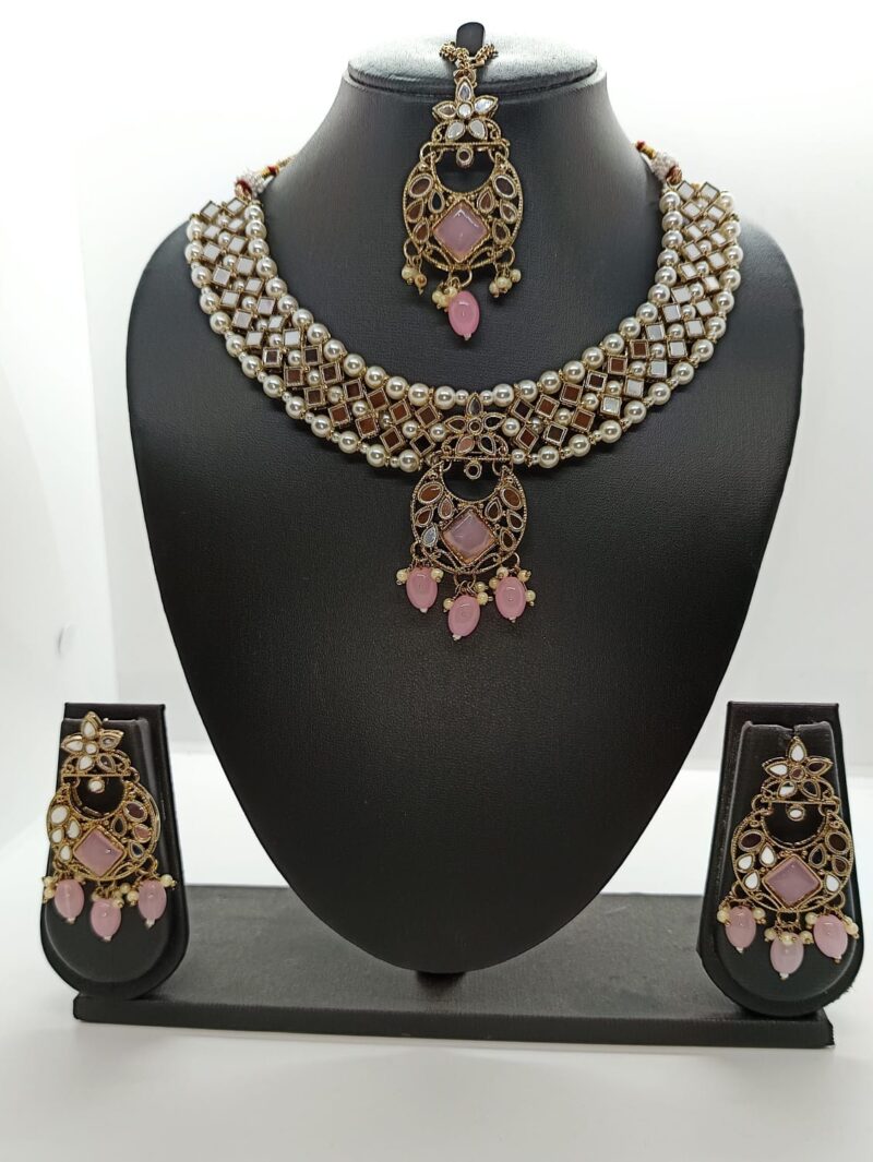 Pink Kundan Necklace with earrings and maang tikkaAvailability: 3 In Stock
