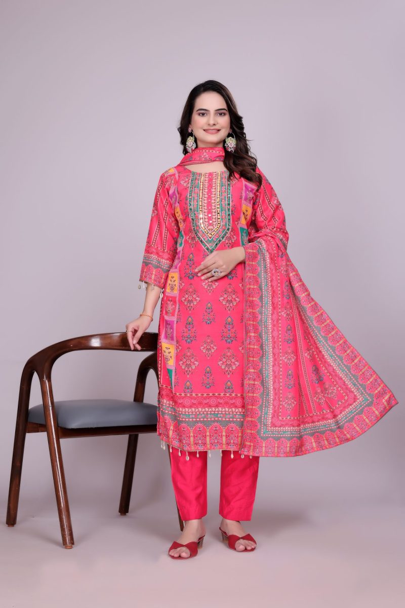 Step into timeless style with the Pink Printed Cotton Straight Suit – a luxurious blend of tradition and modern grace. Crafted for women who admire culture and comfort, this handcrafted suit is perfect for festive mornings, family gatherings, or temple visits. The vibrant pink hue brings joy, while the intricate work adds an elegant charm you’ll love. Shop now and enjoy effortless beauty delivered to your door in Australia.
