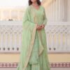 Indifeels Australia provides nationwide shipping for the Pista Green Georgette Anarkali Gown. This ensures customers across the country can easily access this stunning ethnic attire. Whether you are in a bustling city or a serene countryside, this gown can be delivered to your doorstep. Enjoy the convenience of online shopping with the assurance of quality and timely delivery. In conclusion, the Pista Green Georgette Anarkali Gown is a perfect blend of tradition and modernity. Its cultural significance, exquisite design, and luxurious fabric make it a must-have for any wardrobe. Wear it to special occasions, pair it with the right accessories, and enjoy the elegance it brings. With nationwide shipping from Indifeels Australia, owning this beautiful gown is just a click away.Related products