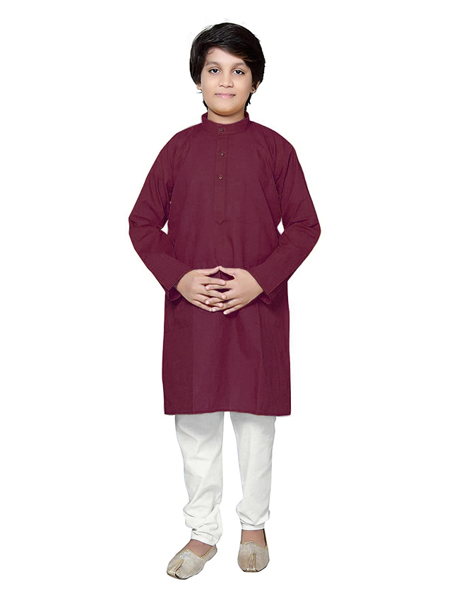 Kids Plain Cotton Kurta Pyjama – Maroon