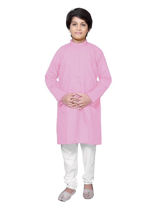 Kids Plain Cotton Kurta Pyjama – Pink