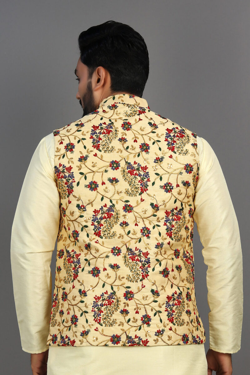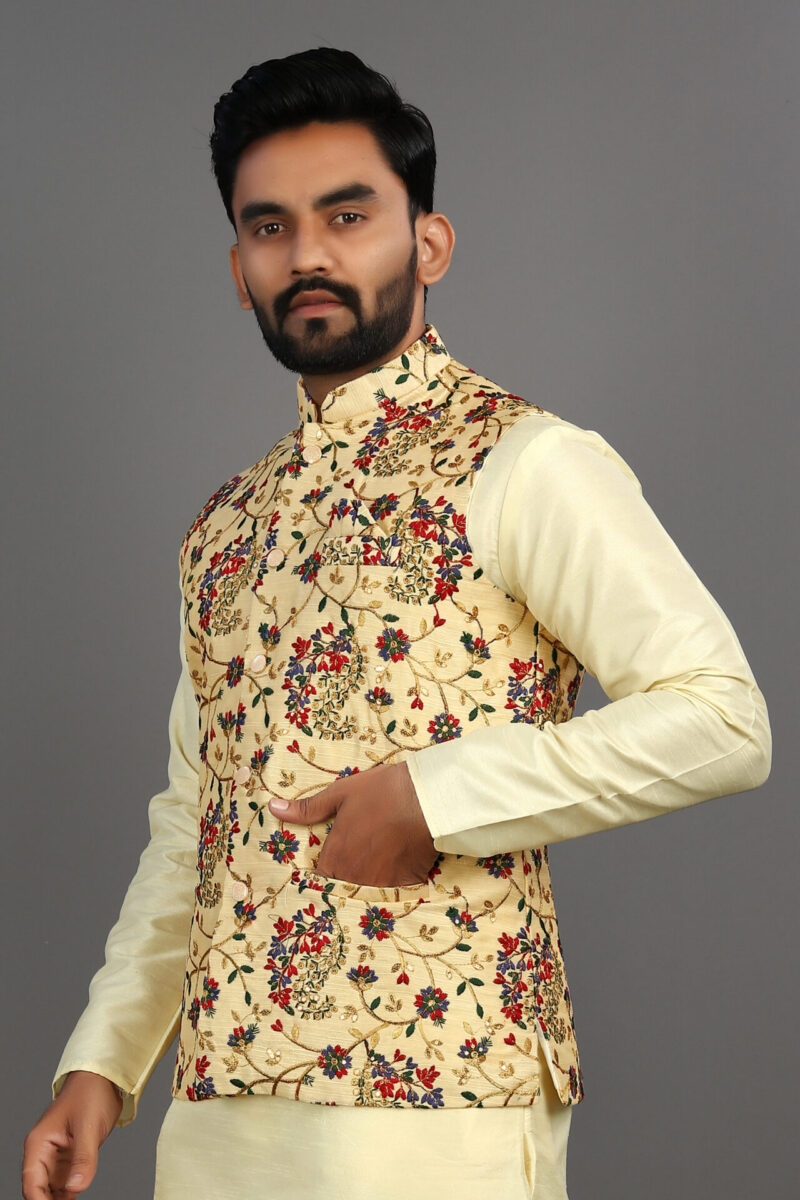 The Nehru jacket, a shorter version of the achkan or sherwani, holds great cultural importance in India. It became popular during the mid-20th century and has since been associated with dignity, elegance, and Indian heritage. The use of silk and intricate printed embroidery further enhances the jacket's status as a garment worn during significant cultural and festive events. Donning a Nehru jacket signifies respect for tradition, while its modern adaptations make it a versatile addition to contemporary wardrobes.Occasions to Wear Printed Silk Nehru Jackets