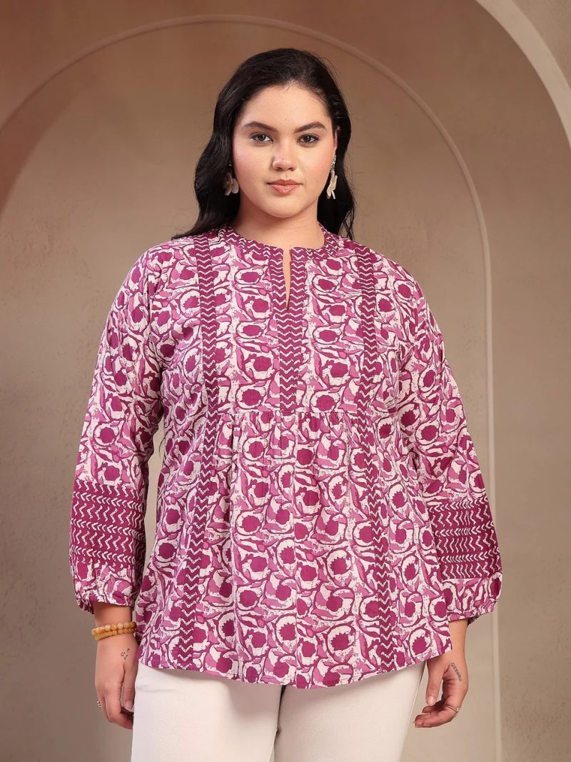 The Purple Floral Printed Cotton Top reflects the gentle spirit of Indian everyday fashion. Floral patterns have always symbolised joy and renewal in traditional design. Moreover, cotton clothing connects with a heritage of simple living and natural fabrics. This top therefore carries cultural warmth while fitting modern lifestyles.
