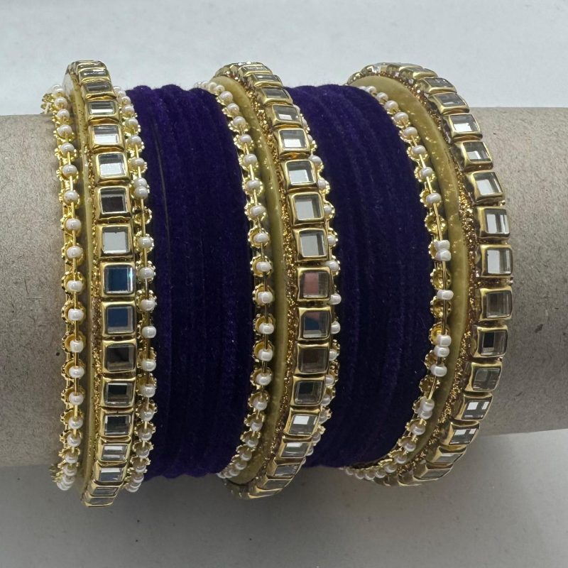 Purple Gold Stone Velvet Bangles – Elegance for Every Occasion