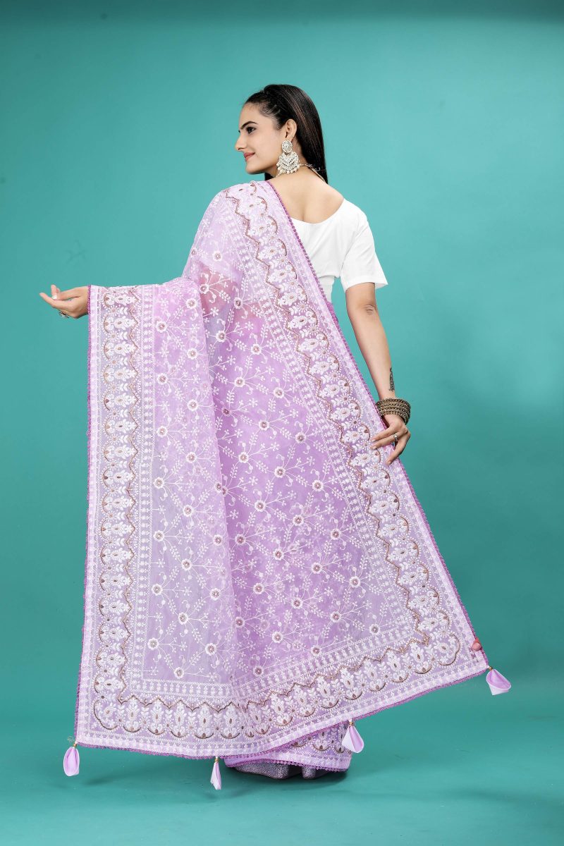 - Confidence Booster: The regal appeal of the Purple Soft Organza Saree boosts your confidence and empowers you to walk with poise. Be the center of attention at weddings, parties, and celebrations, radiating beauty in every step.