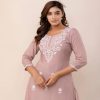 Embroidery reflects artistry rooted in Indian textile heritage. Traditionally, handcrafted details symbolized celebration and femininity. Over time, embroidery embraced contemporary silhouettes. Consequently, short tops now balance tradition with urban fashion. Additionally, mauve represents calm confidence and refined taste.