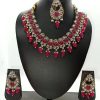 Pink Kundan Necklace With Earrings And MaangTikka