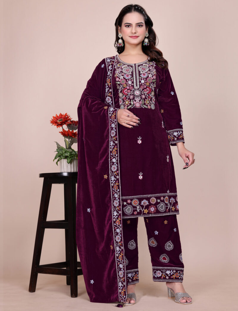 - BOTTOM :- Velvet with Heavy Embroidery + 3mm Sequence work